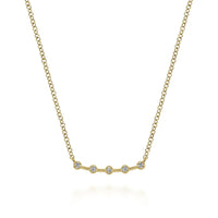 14 KARAT YELLOW GOLD DIAMOND STATIONS CURVED BAR NECKLACE
