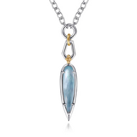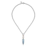 14K YELLOW GOLD AND STERLING SILVER BUJUKAN ROCK CRYSTAL AND WHITE MOTHER OF PEARL AND TURQUOISE PENDANT NECKLACE