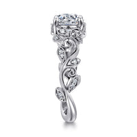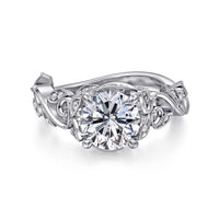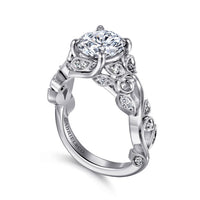 14K WHITE GOLD FLORAL ROUND DIAMOND ENGAGEMENT RING